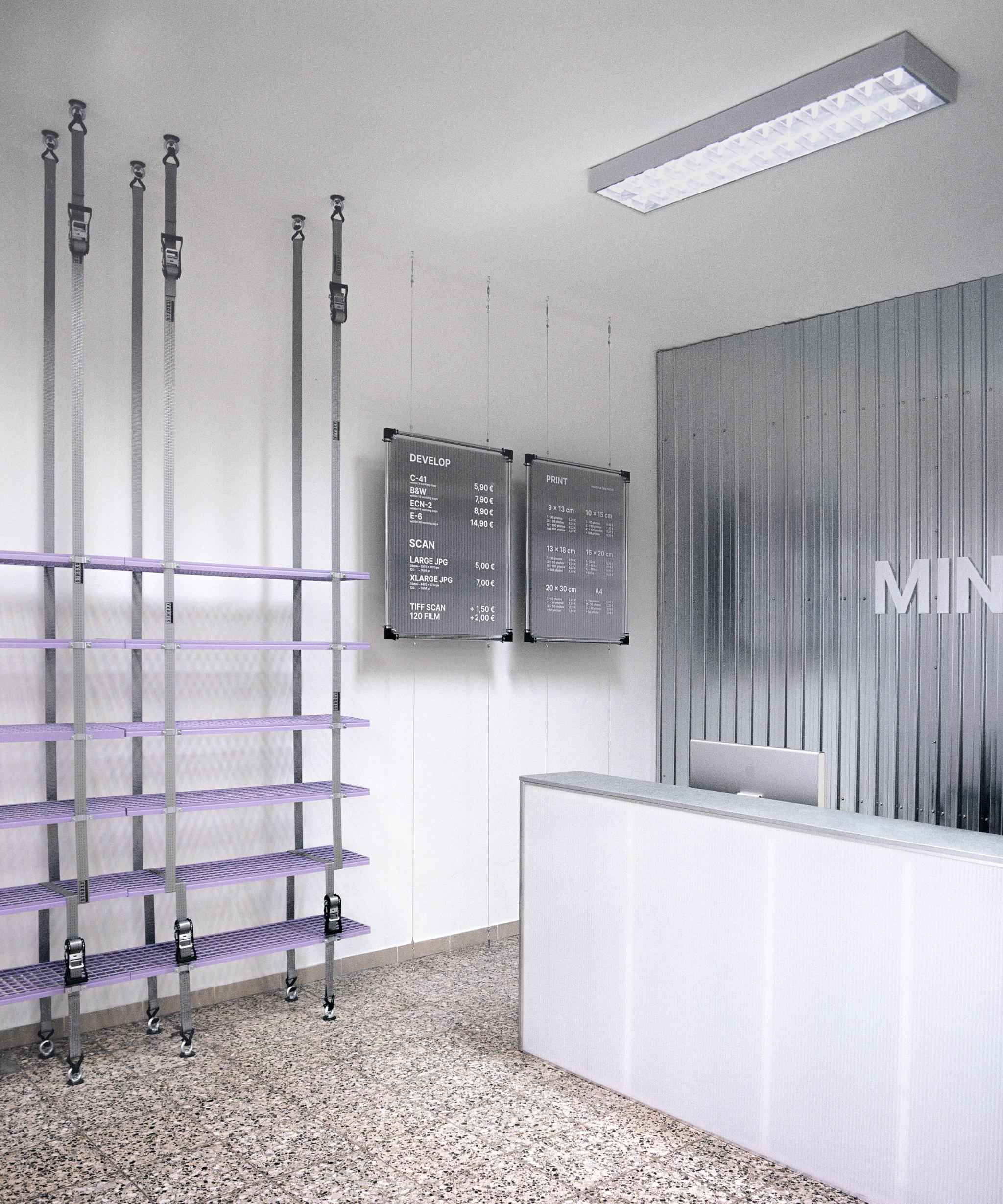 Interior and furniture design for an analog photography showroom and laboratory in Bratislava.